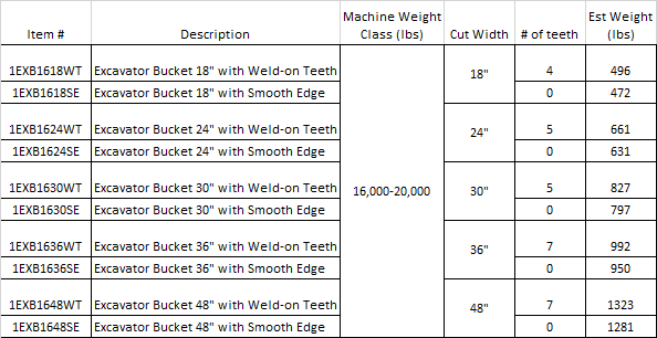 Available widths: 12”, 16”, 18”, 24”, 30”, 36” and 48”
