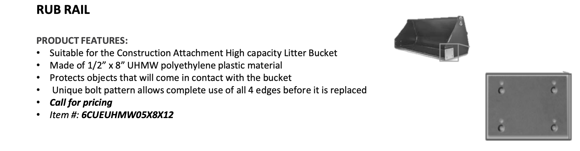 Optional rub rail installed to protect objects that will come in contact with the bucket